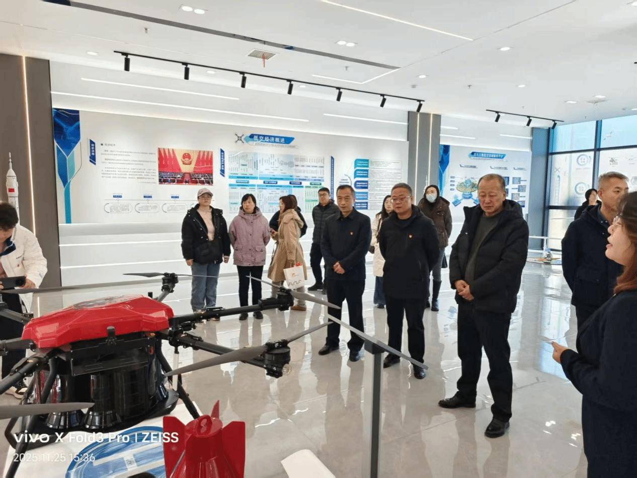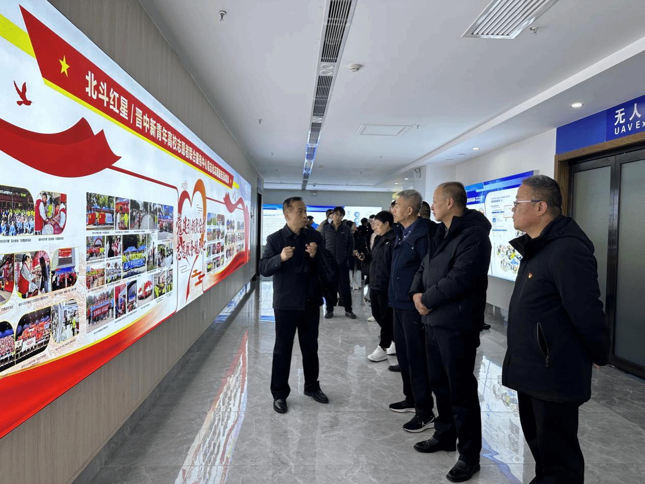 活动开始,党员队伍实地参观了企业多个功能区域:在“北斗红星・晋中新青年志愿服务”展示墙前,了解企业联动青年群体的服务实践成果;驻足园区规划模型展区,清晰企业产业布局与发展蓝图;走进低空经济及无人机技术展示区,近距离观摩无人机设备、学习低空经济产业进展,同时梳理了学院与企业在专业实践、技术协同方面的合作切入点。