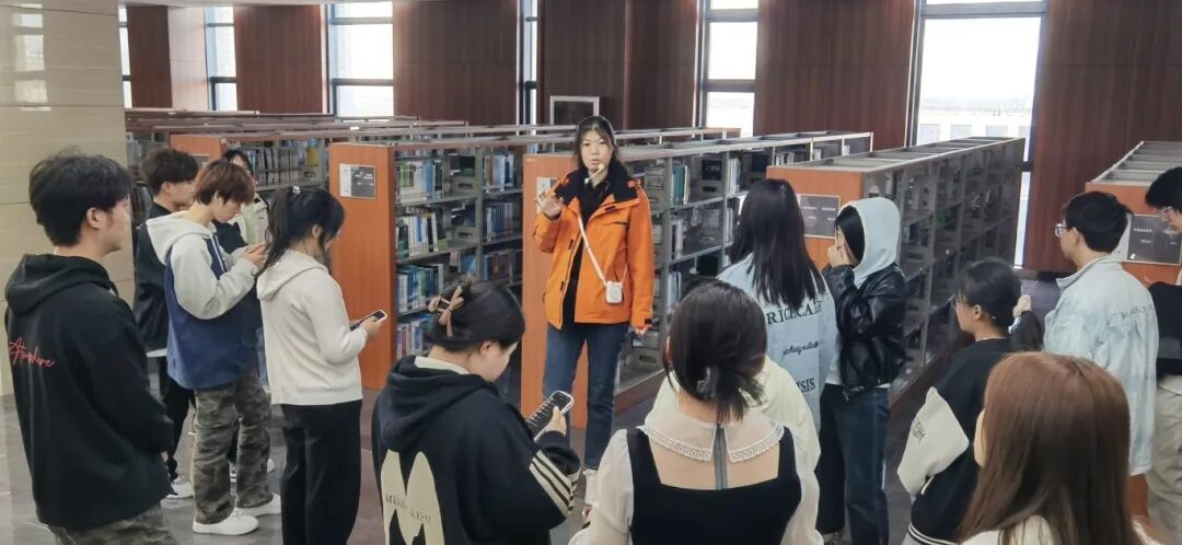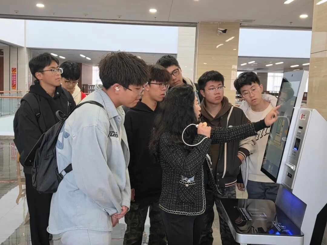 研学环节中,图文信息中心的资深老师化身“最强导游”,按系部分组带领新生开展实地导览。不仅细致讲解各功能区域,而且现场演示检索机、自助借还设备的操作方法,让新生在直观体验中快速掌握使用技巧,真正实现“学用结合”。