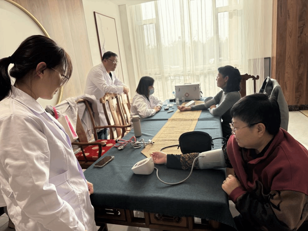 继续教育中心一层大厅的义诊现场,医护人员热忱细致地为老同志们测量血压、听诊心肺,耐心询问既往病史,细致入微的服务让老同志们倍感温暖。