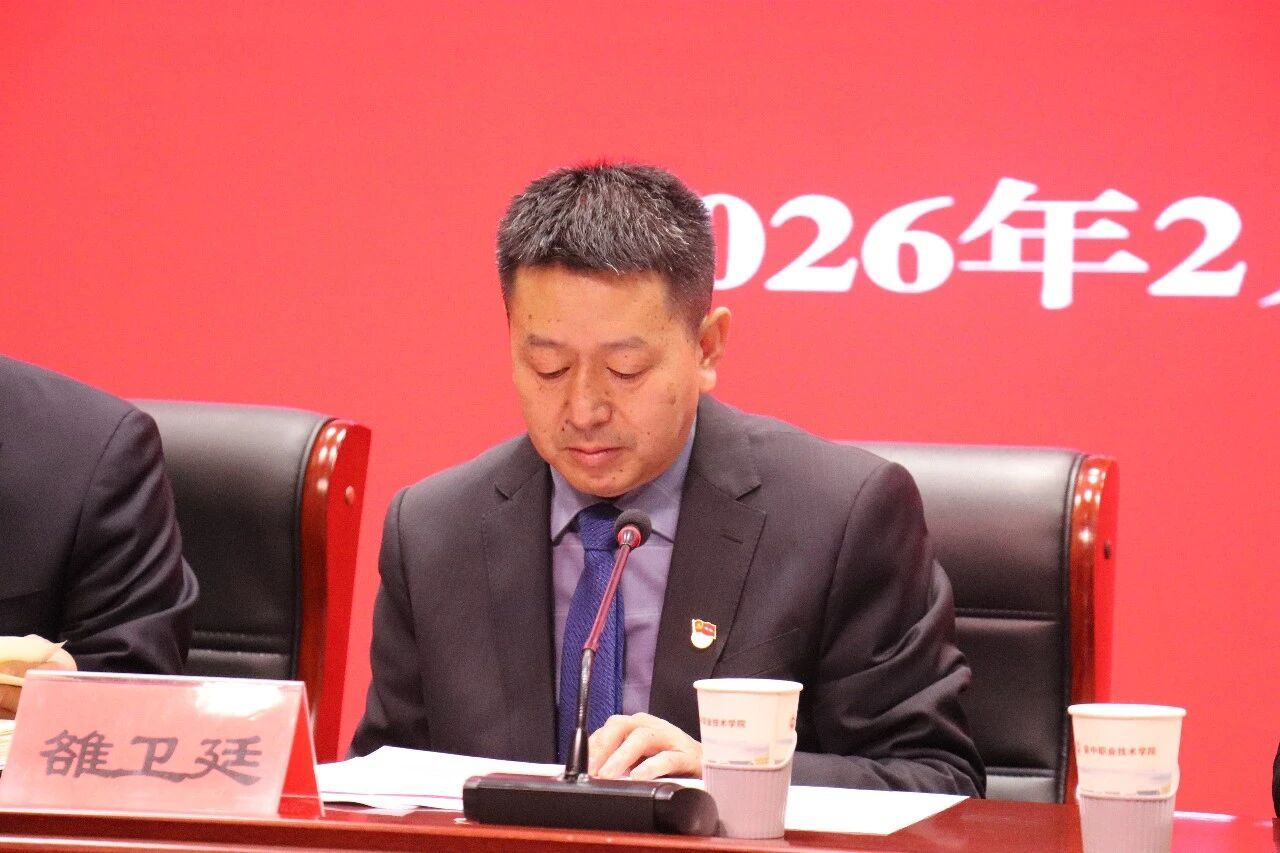 2月6日,晋中职业技术学院隆重召开2026年全面从严治党工作会议。学院党委班子成员,各教学系党总支书记、主任,晋中卫校、晋中艺校、晋中体校校级领导,学院直属党支部书记、纪检委员,纪检联络员、特约监督员以及副科级以上干部齐聚一堂,深入学习贯彻党的二十届四中全会精神和习近平总书记对山西工作的重要讲话重要指示精神,全面落实上级纪委全会部署要求,以更高标准、更实举措推进全面从严治党,为学院“十五五”良好开局提供坚强政治保障。