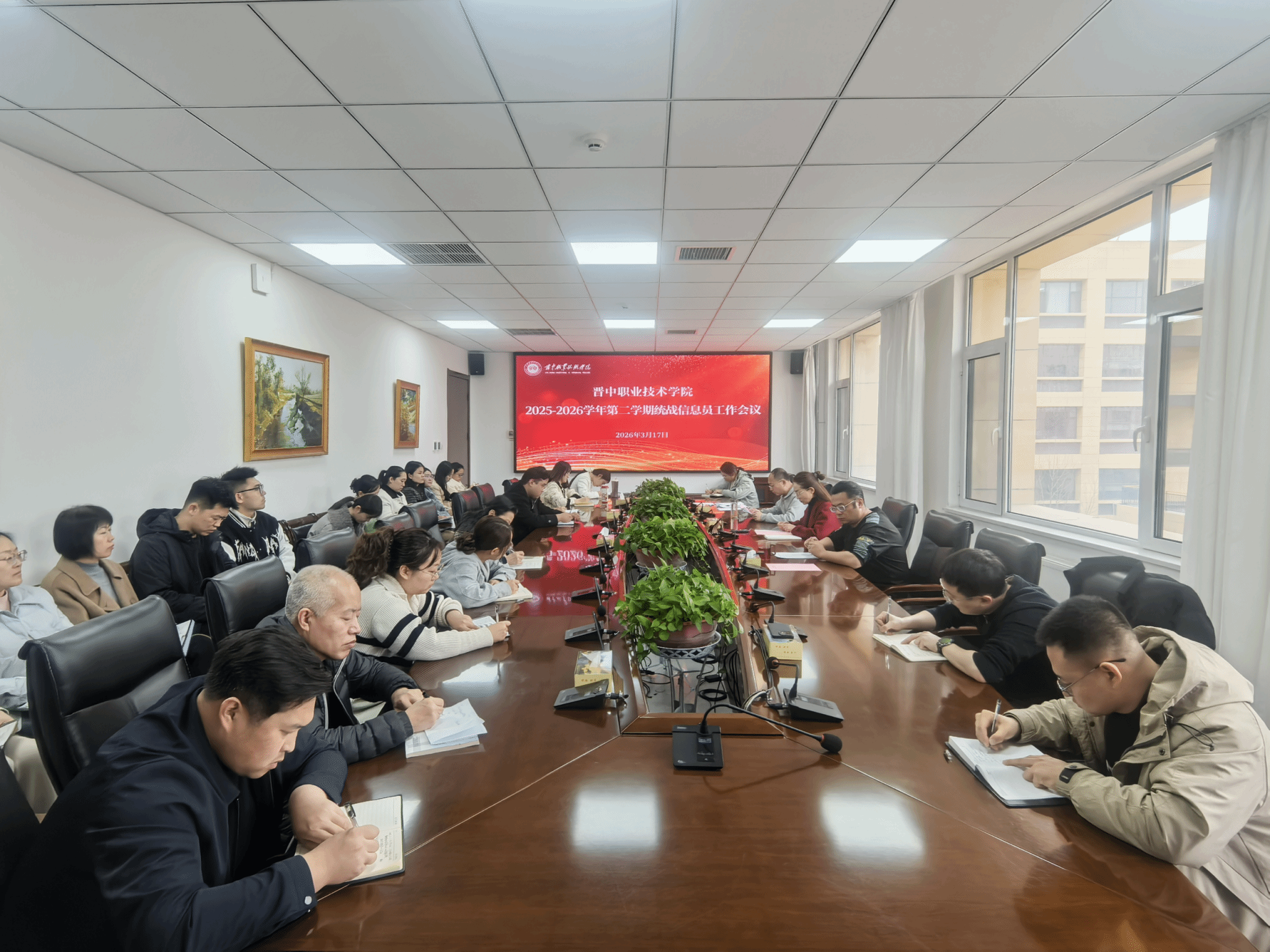 3月17日,晋中职院党委宣传统战部组织召开全院2025-2026学年第二学期统战信息员工作会议,传达学习2026年全国统战部长会议和2026年全省统战部长会议精神,全面总结统战工作成效,分析当前形势任务,安排部署下一步工作落实举措。学院党委委员、宣传统战部部长出席并讲话。