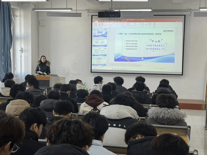 2025年是“十四五”规划收官的关键节点,为深入学习贯彻中国共产党第二十届中央委员会第四次全体会议精神,引导广大青年大学生准确把握时代脉搏,自觉将个人理想融入民族发展伟业,11月25日,学院党委委员、宣传统战部部长郝丽雯为车辆工程系学生讲授题为《决胜“十四五”,奋发向前行》的专题思政课。