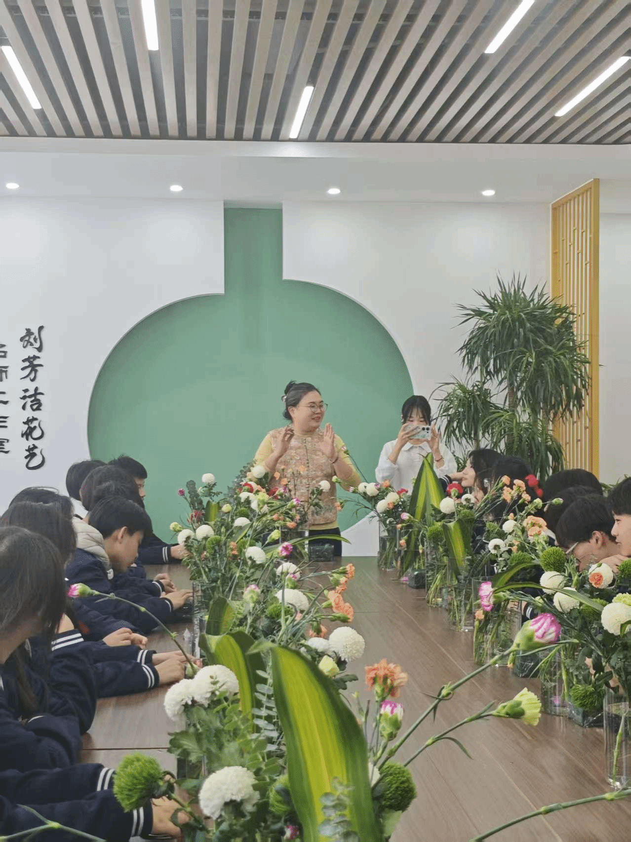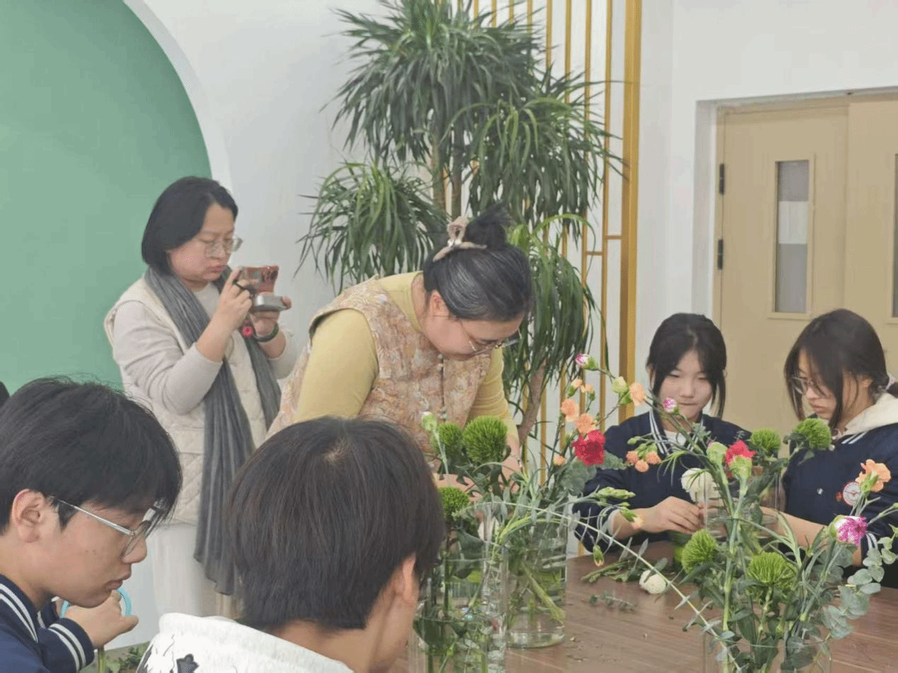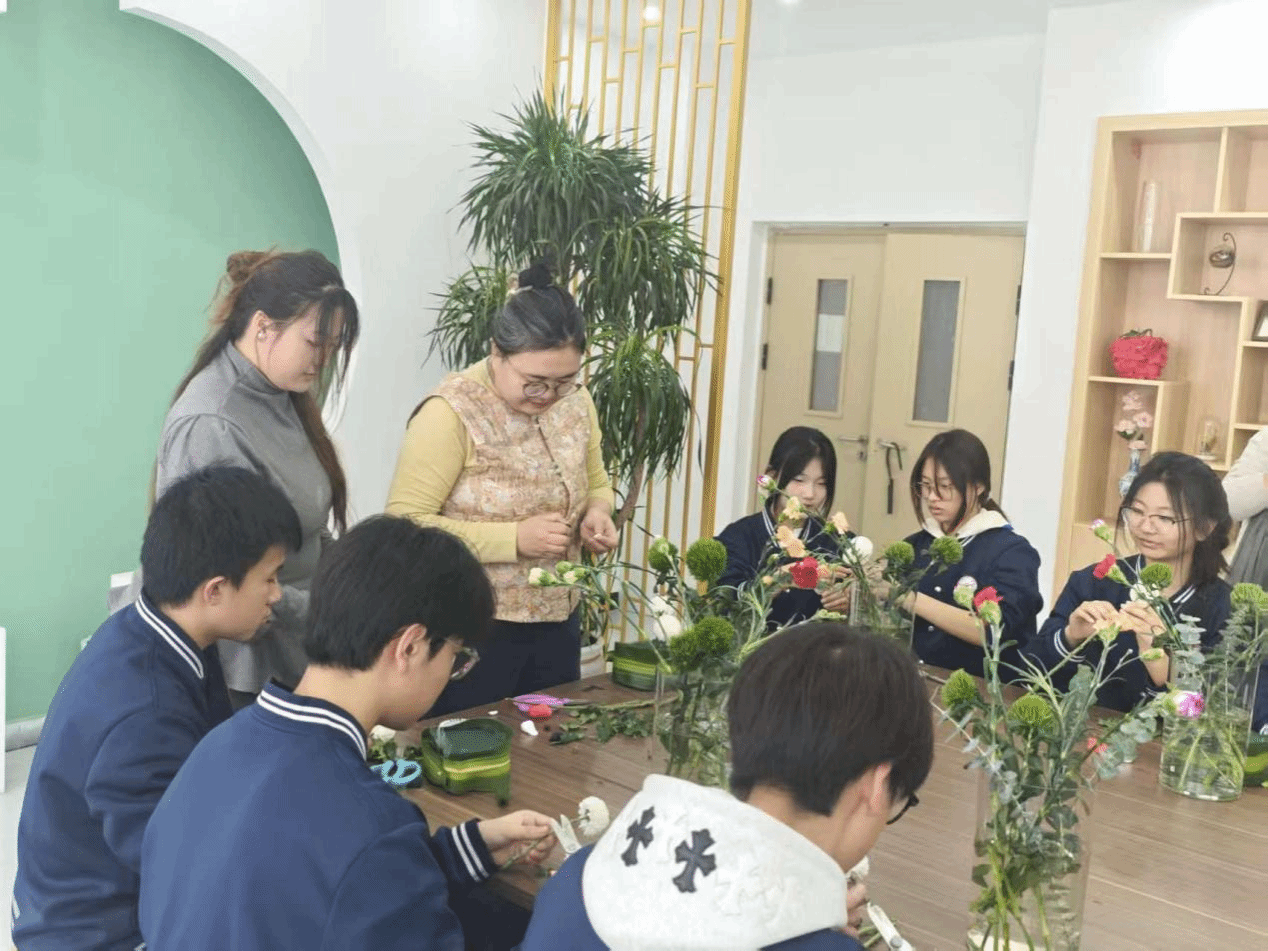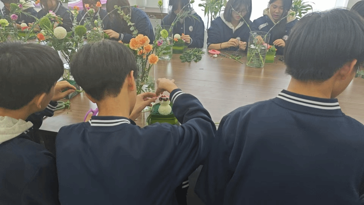 一花一叶皆含韵,一枝一束总关情。插花艺术作为承载着人们对自然与生活热爱的传统技艺,兼具观赏价值与实用意义。为引导学生探索花艺创作的奥秘,提升审美素养与动手能力,近日,晋中职业技术学院生物工程系教师刘芳洁带领晋中职业中专学校高一、高二学子,开展了一场别开生面的花艺研学实践活动,让同学们在花香氤氲中沉浸式感受传统艺术的独特魅力。