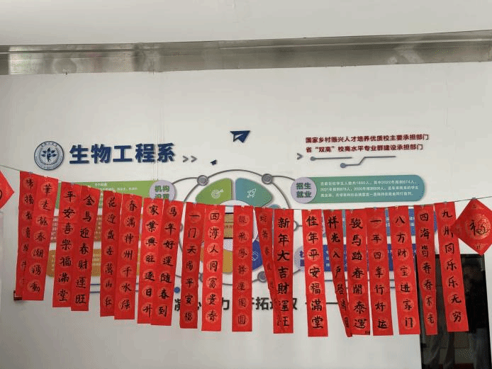 在评审环节,严格遵循“内容积极、格式规范、对仗工整”的原则,保证评审过程的公开透明。生物工程系党总支书记现场讲解部分作品的创作思路与格律技巧,加深了同学们对对联艺术的理解。经评选,最终产生多名获奖者。优秀作品除在系楼大厅展示区集中陈列外,更被悬挂至各教师办公室及系楼门口,让传统文化韵味融入日常教学环境,深受师生好评。
